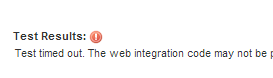 If the test is unsuccessful, the results return with a red exclamation. The web integration code is not installed properly or the landing page cannot be found. See Web Integration Troubleshooting below.